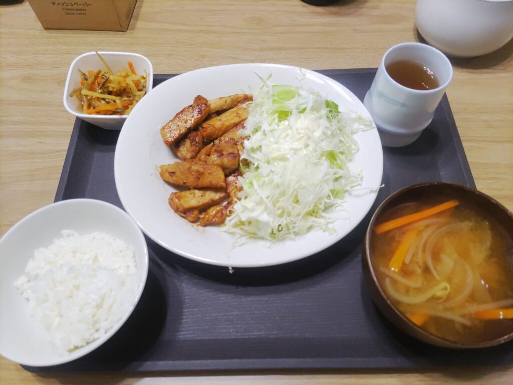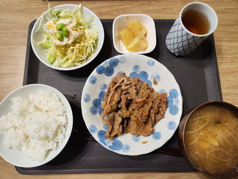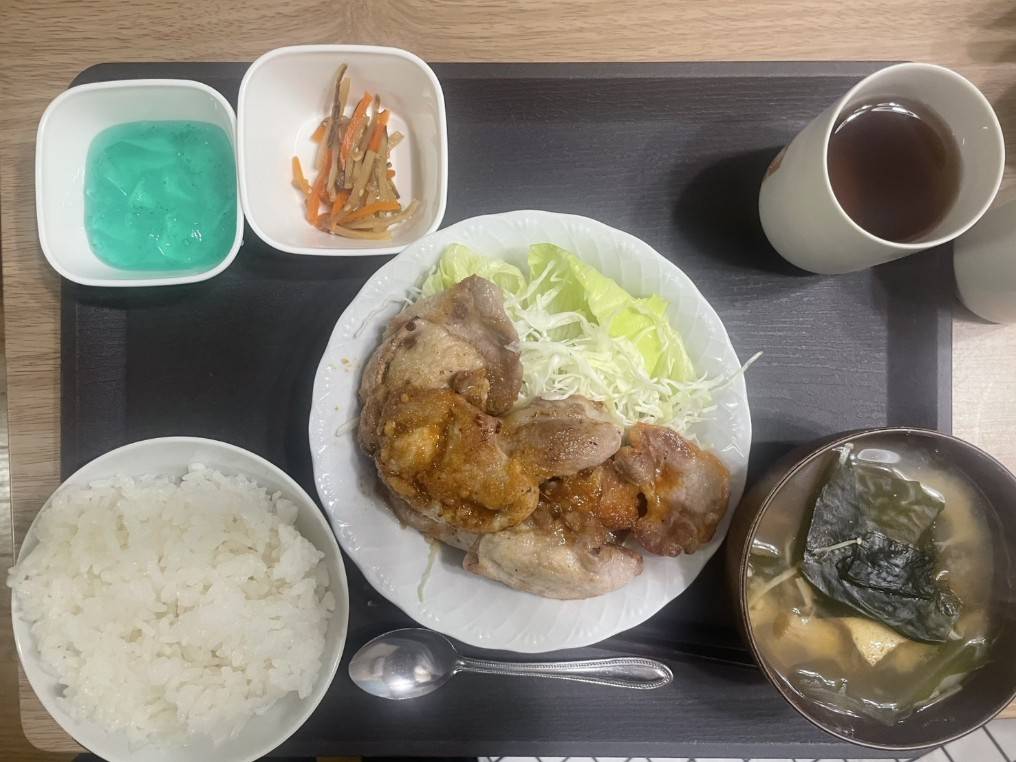 2025/10/21 夕食 豚の生姜焼き、きんぴらごぼう、味噌汁、レモンゼリー、ごはん