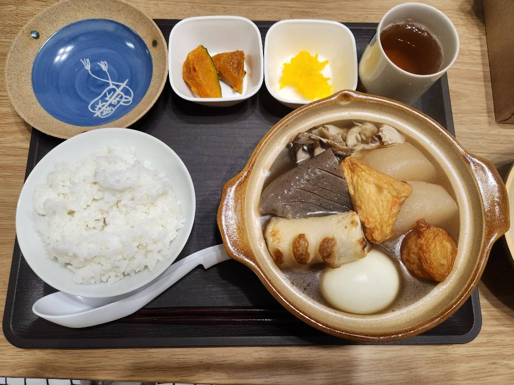2025/10/26 夕食 ご飯 おでん かぼちゃの煮物 たくあん