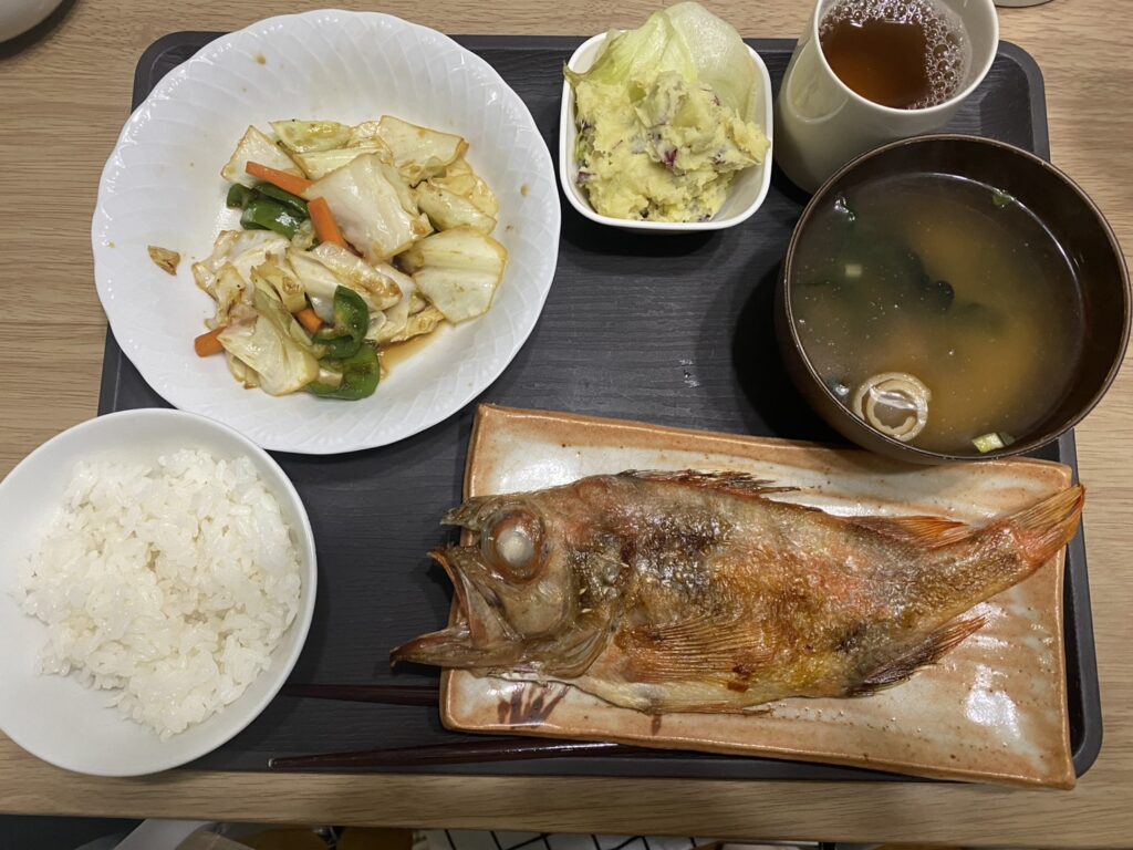 2025/10/22 夕食 ごはん 赤魚塩焼き 野菜炒め サラダ 味噌汁