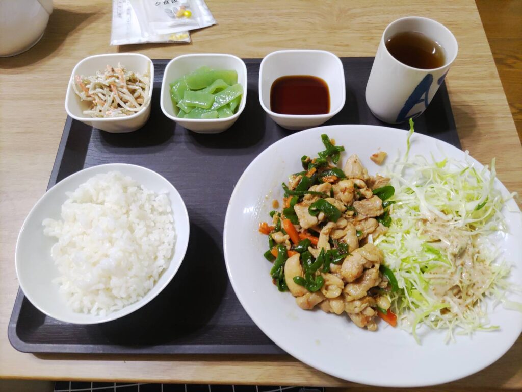 2025/01/19 夕食 ご飯 青椒肉絲 味噌汁 ポテトサラダ 漬物