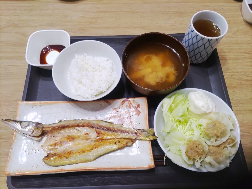 2025/11/06 夕食 ご飯 かますの開き サラダ しゅうまい 味噌汁