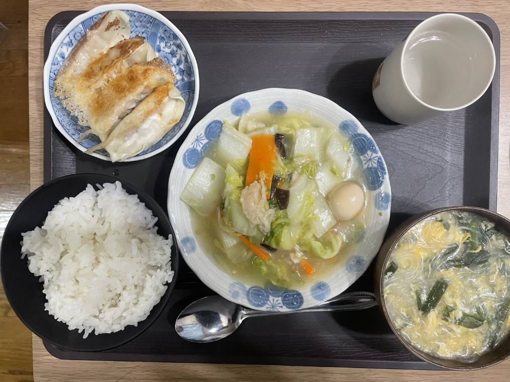 2025/11/18 夕食 ごはん 八宝菜 春雨スープ 餃子