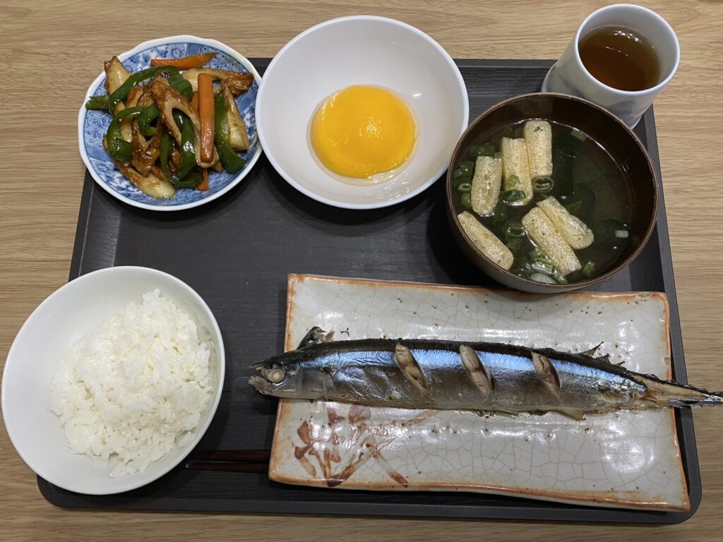 2025/11/19 夕食 ごはん さんま塩焼き 野菜炒め モモ 味噌汁