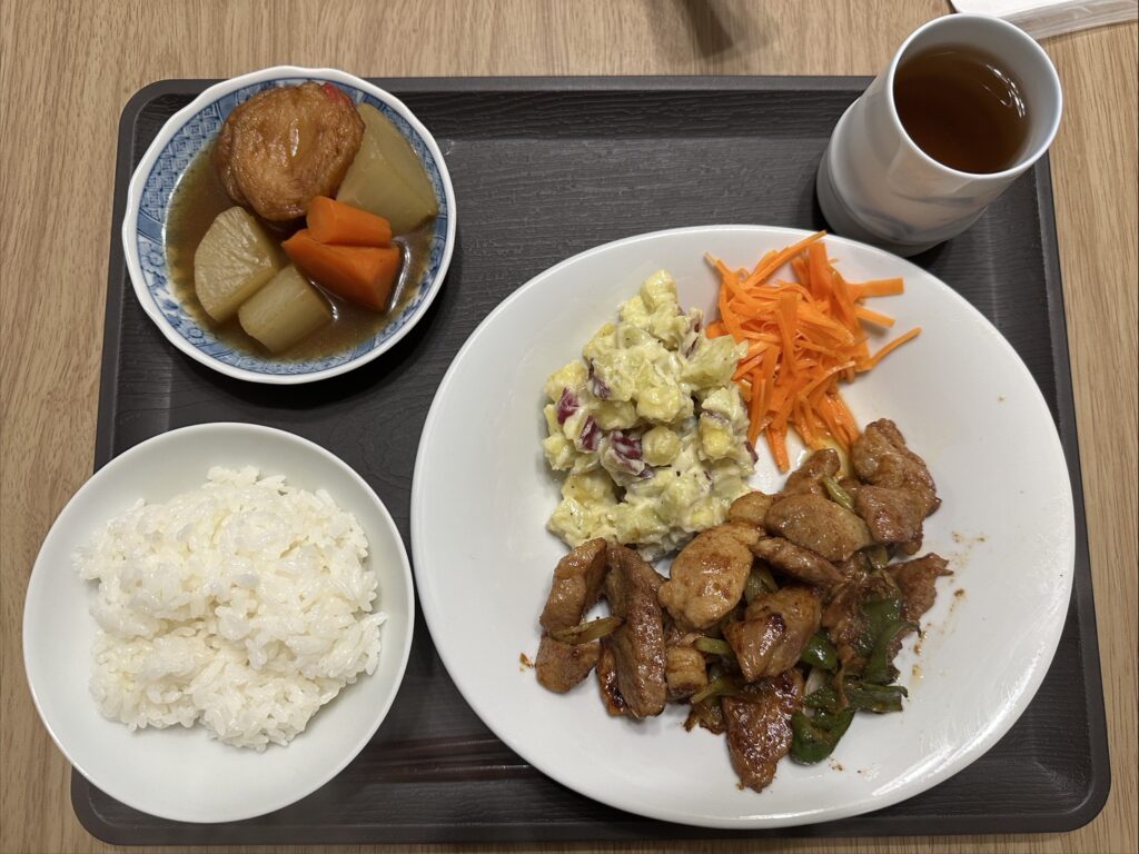 2025/10/18 夕食 ご飯 味噌汁 青椒肉絲 肉団子と大根の煮物 サラダ