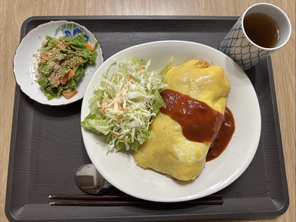 2025/11/29 夕食 オムライス サラダ キャベツごま和え