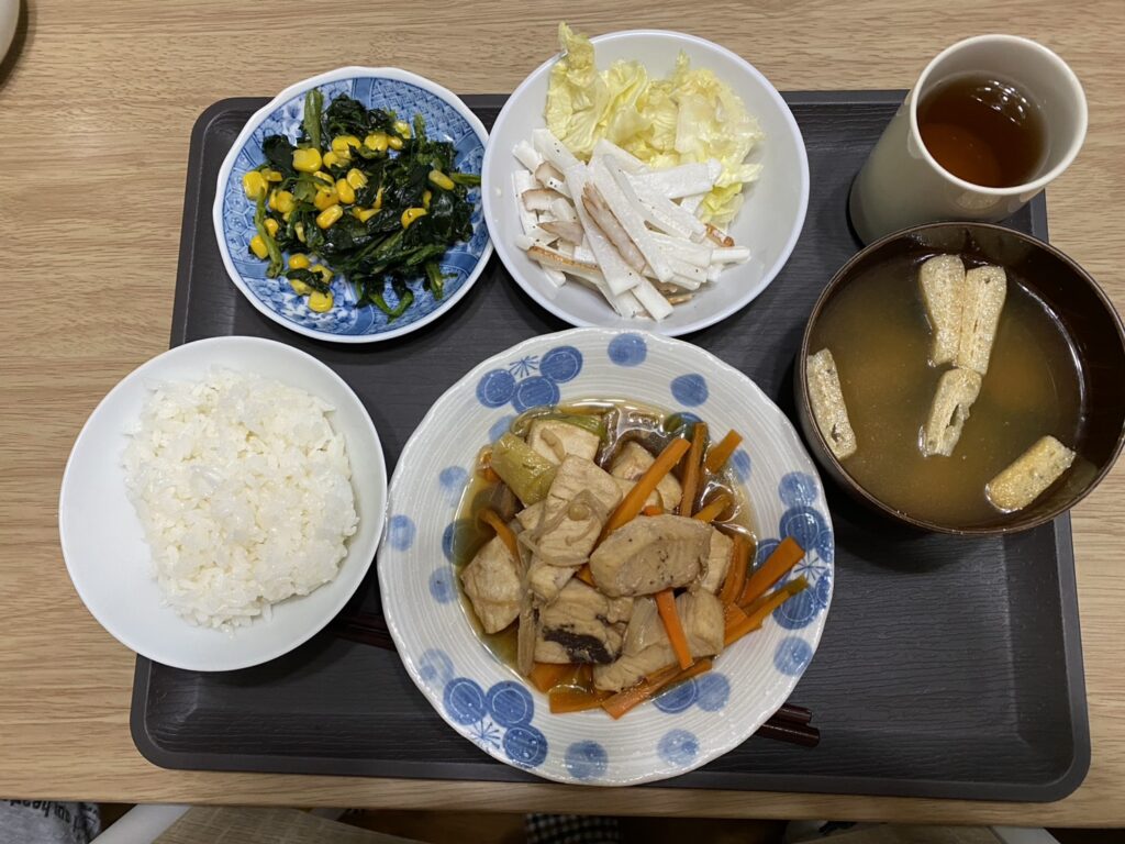 2025/10/07 夕食 焼うどん、酢豚、ヨーグルト、味噌、ごはん
