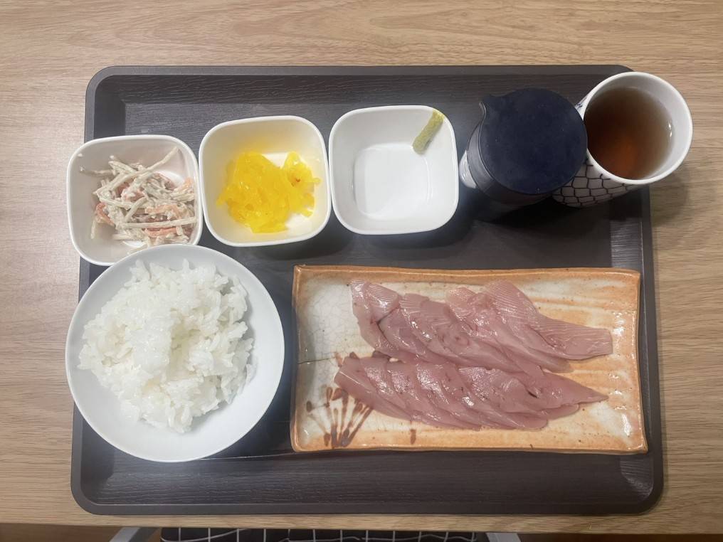 2025/11/30 夕食 刺身、ごぼうサラダ、たくあん、ごはん