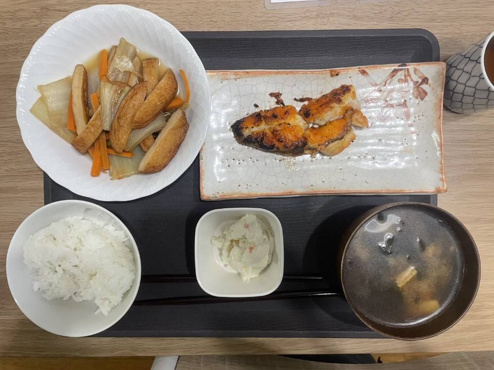2025/09/23 夕食 ごはん ぶりの照り焼き、みそ汁、サラダ、きんぴらごぼう